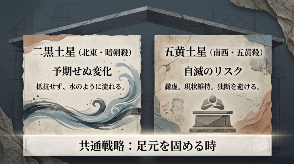 五黄土星:準備と自重の「南西」に回座(※五黄殺・月破)