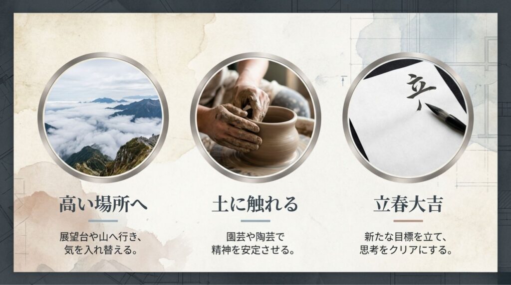 • 「立春大吉」の精神: 気学上の新年である今月は、過去を清算し、新しい目標を立てるのに最適です。