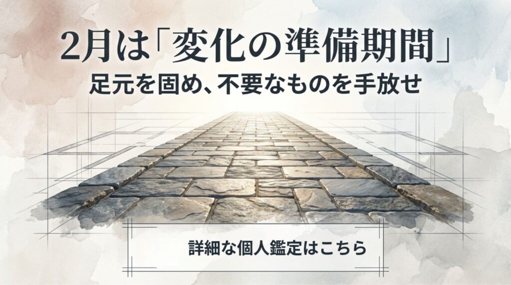 2026年2月は、まさに「変化の準備期間」です。八白土星のエネルギーを借りて、自分自身の足元を固め、不要なものを手放すことで、春以降の飛躍に向けた強固な基盤を作ることができます。