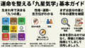 「占い」として紹介されることも多いですが、実際は長い歴史を持つ統計的・体系的な学問であり、人生の流れやタイミングを知るための“指針”として活用されています。