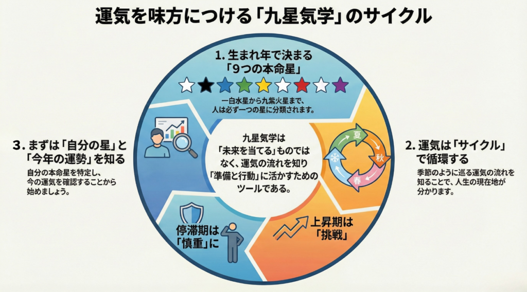 運気の流れや傾向を知ることで、行動のタイミングを調整したり、リスクを回避したりするための指標です。