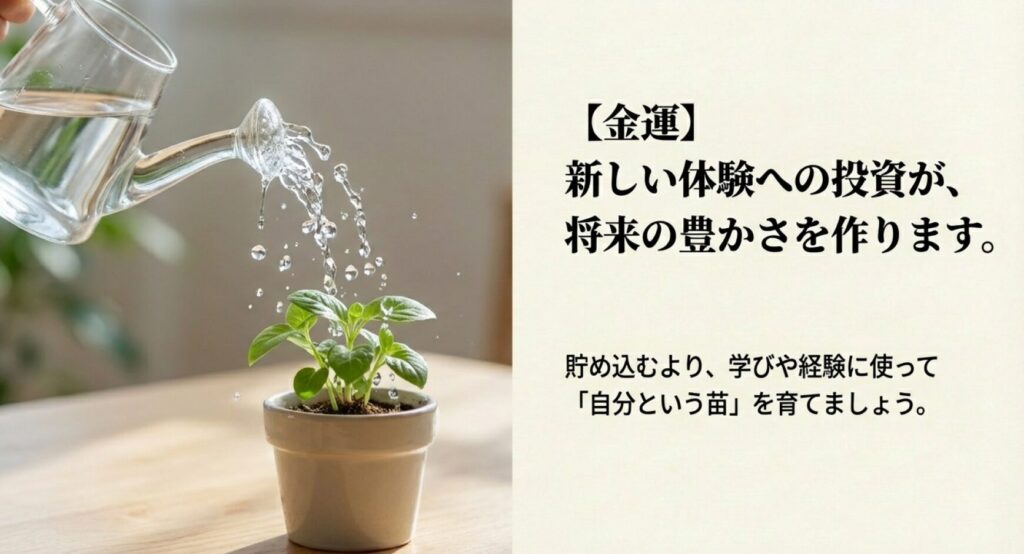 金運アップのアクションとしては、朝一番に窓を開けて新鮮な空気を取り込むことや、明るい色の財布を新調することが推奨されます。また、不要なものを整理して「隙間」を作ることで、新しい富が流れ込みやすくなります。詳しく知りたい方は、金運アップ習慣のまとめをご覧ください。