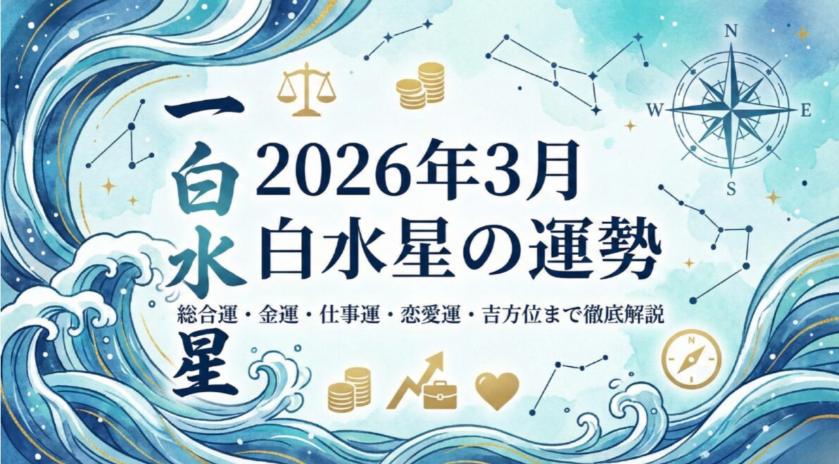 2026年3月の一白水星の運勢を徹底解説。艮宮に回座し「変化」の時期を迎える今月、年盤の四緑木星が与える影響とは?仕事運、金運、恋愛運から、開運アクション、旅行や引っ越しに使える吉方位まで。転換期を乗りこなすための専門的な知恵を凝縮しました。
