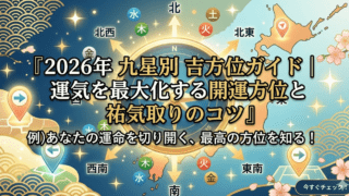 九星気学で凶方位へ行く時の対処法!引っ越しや旅行で避けられない場合の回避策を徹底解説「引っ越し先が凶方位だった」「どうしても行かなければならない旅行先が悪い方角」など、九星気学を知ると凶方位に対する不安が尽きないものです。しかし、凶方位は「...