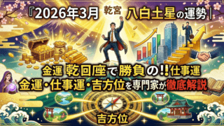2026年3月の八白土星の運勢を詳しく解説。乾宮回座による多忙な日々と、年盤二黒土星の影響、被同会五黄土星の注意点を専門家が紐解きます。仕事運や金運、吉方位を把握して、大きなチャンスを掴むための開運アクションを実践しましょう。2026年3月...